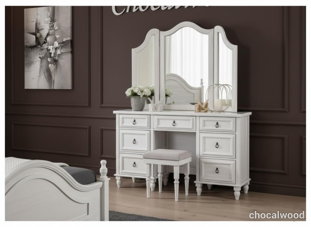 دارای دو عدد پاتختی، کلگی بالا و پایین، دو کفی تخت، بههمراه میز آرایش و صندلی هماهنگ